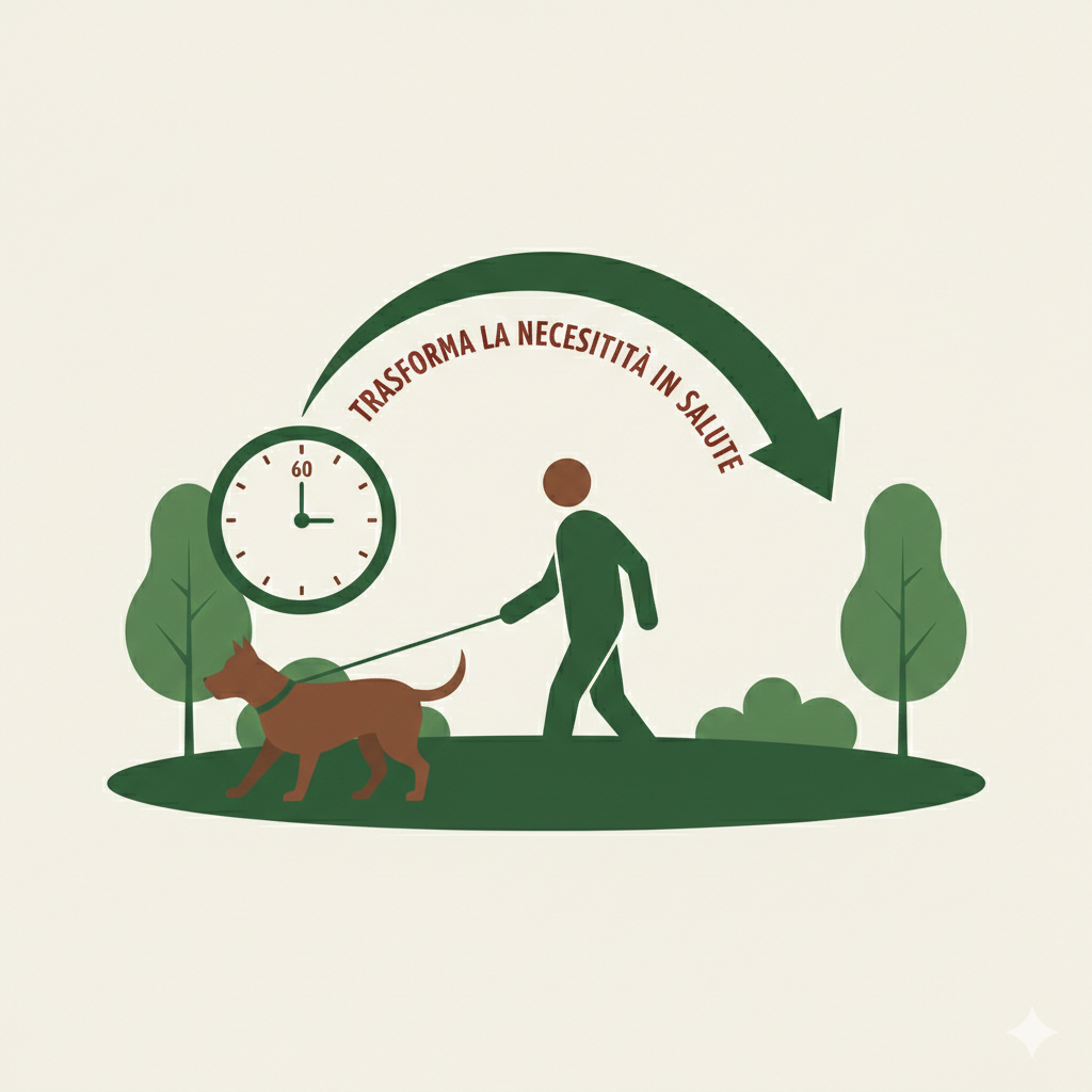 Hai già 60 minuti di movimento "obbligatorio" nel tuo calendario ogni giorno. Zampiamo® non ti chiede tempo extra: trasforma la tua necessità in salute.